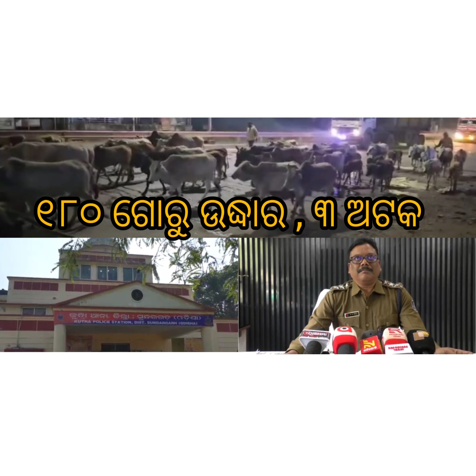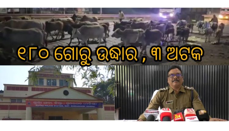 (ସତ୍ୟାନ୍ୟୁଜ) ବେଆଇନ୍ ଗୋରୁ ଚାଲାଣ ଉପରେ ସୁନ୍ଦରଗଡ ପୋଲିସ୍ ଚଢାଉ କରି ଶତାଧିକ ଗୋରୁଙ୍କୁ ଉଦ୍ଧାର କରିବା ସହ ୩ ଜଣ ଗୋ ଚାଲାଣକାରୀ ଙ୍କୁ ଅଟକ ରଖିଛି। ୧୦ ନମ୍ୱର୍ ରାଜ୍ୟ ରାଜପଥ ରେ ଏହି ଗୋରୁ ମାନଙ୍କୁ ନେଇ ଯାଉଥିବା ବେଳେ କୁତ୍ରା ଥାନା ପୋଲିସ ପକ୍ଷରୁ ଏହି ଚଢାଉ କରା ଯାଇଥିଲା । ପାଖାପାଖି ୧୮୦ଟି ଗୋରୁଙ୍କୁ ଉଦ୍ଧାର କରା ଯାଇଛି। ବେଆଇନ୍ ଗୋରୁ ଚାଲାଣ ଉପରେ ଲଗାମ୍ ଦେବାକୁ ସୁନ୍ଦରଗଡ଼ ଏସପି ଙ୍କ ନିର୍ଦ୍ଦେଶ ପରେ କୁତ୍ରା ପୋଲିସ୍ ଗୋ ଚାଲାଣ ଉପରେ ନଜର ରଖିଥିଲା। ଗୋରୁ ମାନଙ୍କୁ କେଉଁ ଠାରୁ ଅଣା ଯାଉଥିଲା ଏବଂ କୁଆଡେ ନିଆ ଯାଉଥିଲା , ପୋଲିସ୍ ତାହାର ତଦନ୍ତ କରୁଛି।