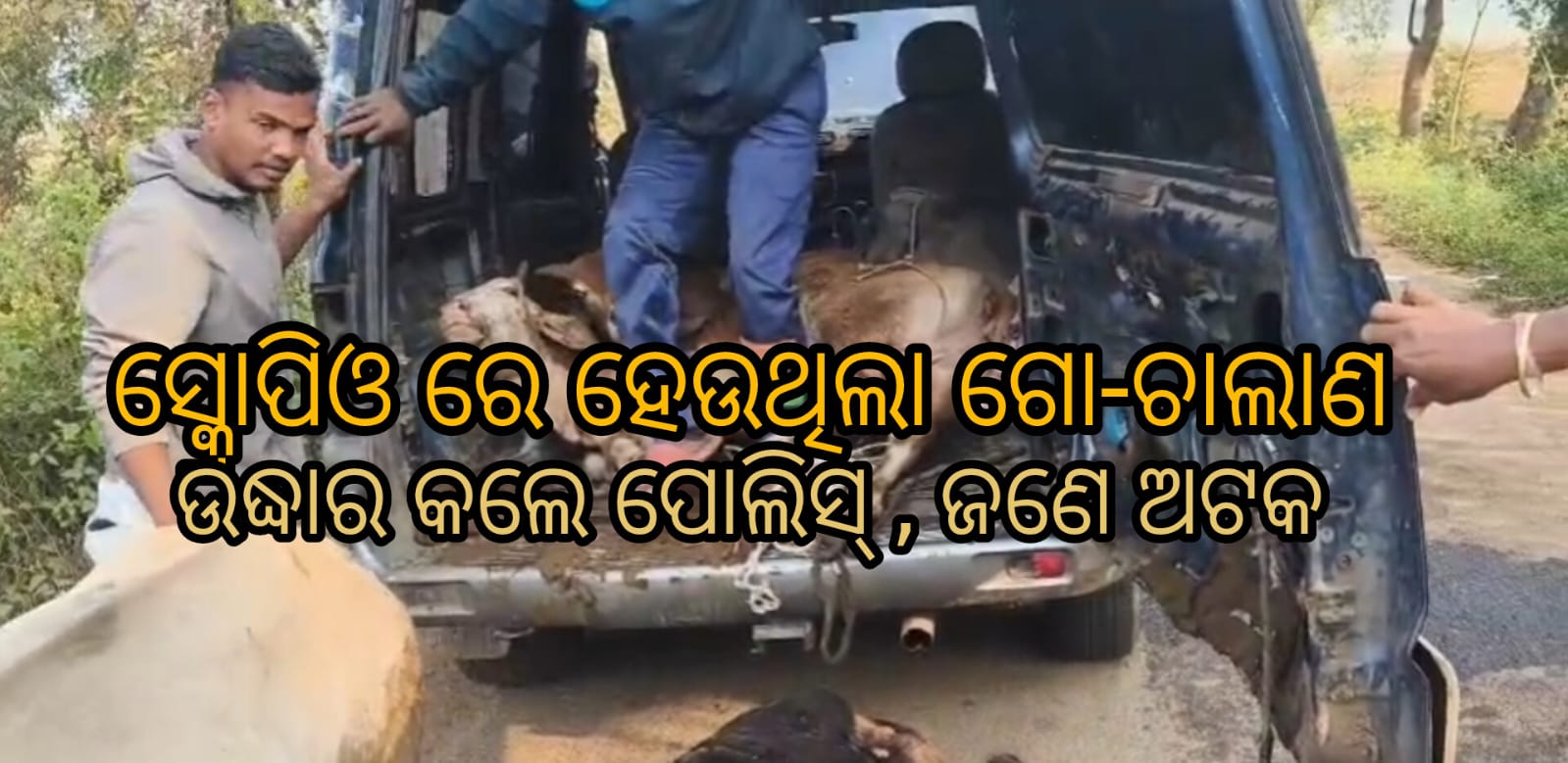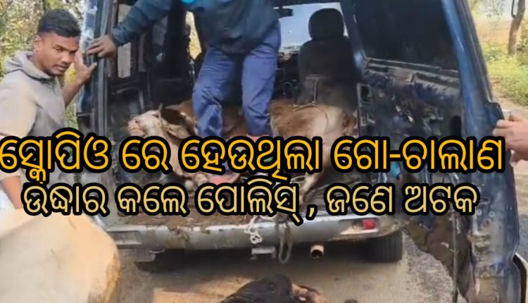 ବେଆଇନ ଗୋ ଚାଲାଣ ହେଉଥିବା ବେଳେ ୬ ଟି ଗୋରୁଙ୍କୁ ଉଦ୍ଧାର କରା ଯାଇଛି। ପୋଲିସ ଜଣଙ୍କୁ ଅଟକ ରଖିବା ସହ ଗୋ ଚାଲାଣ ରେ ବ୍ୟବହୃତ ସ୍କ୍ରୋପିଓ ଗାଡ଼ିକୁ ଜବତ କରିଛି।