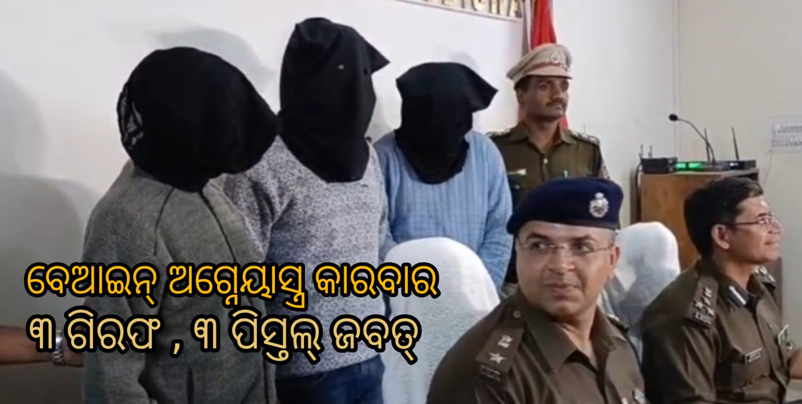ରାଉରକେଲା : ଜାଲ୍ ପିସ୍ତଲ୍ ଲାଇସେନ୍ସ କରୁଥିବା ଆନ୍ତଃରାଜ୍ୟ ଗ୍ୟାଙ୍ଗ କିଙ୍ଗପିନ୍ ରତନ ସା ସମେତ ୩ ଗିରଫ।। ପିସ୍ତଲ , ଗୁଳି ଜବତ।