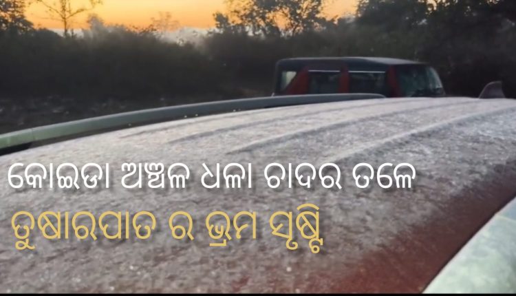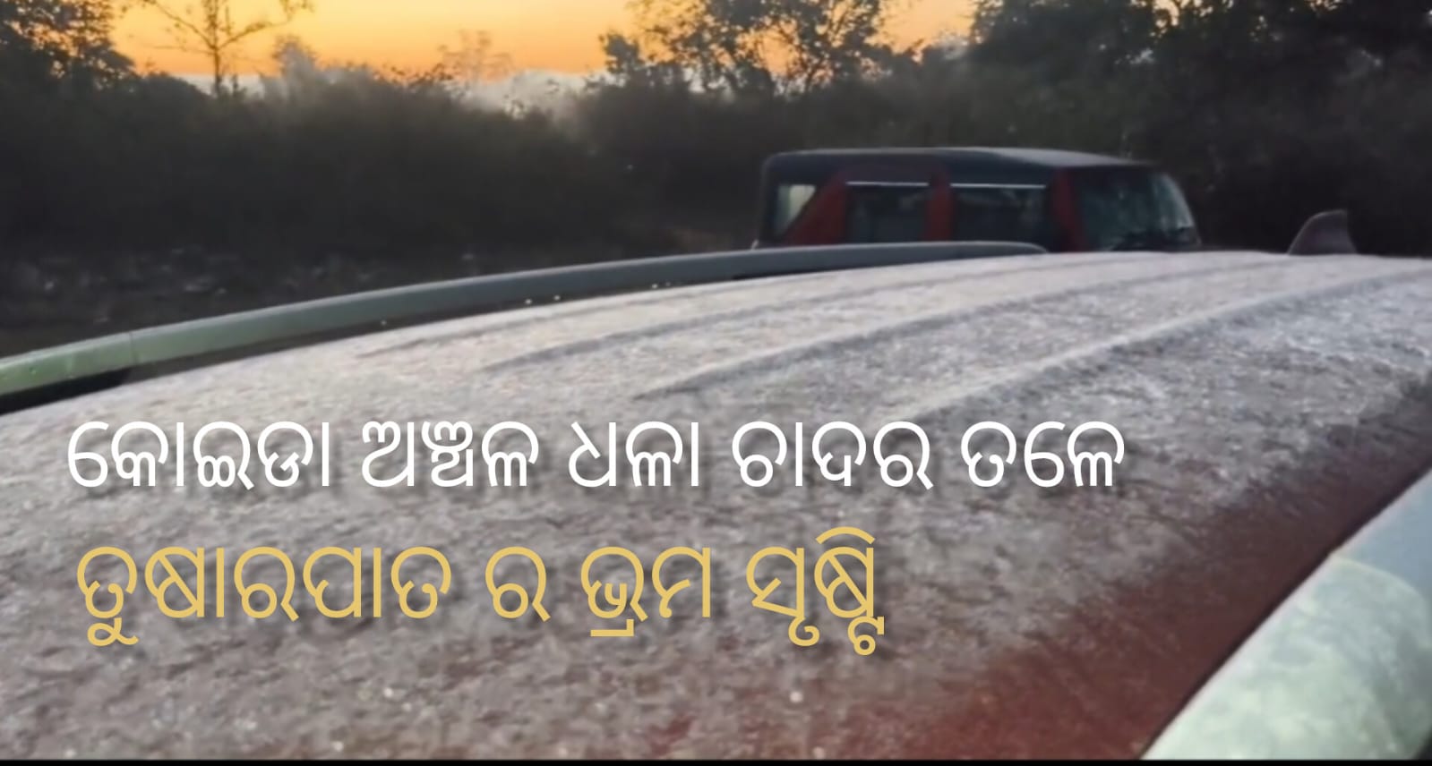 ରାଉରକେଲା:୭/୧(ସତ୍ୟାନ୍ୟୁଜ) ରାଜ୍ୟର ପ୍ରାୟ ସମସ୍ତ ସ୍ଥାନରେ ଏବେ ପ୍ରବଳ ଶୀତ ଲହରୀ ଅନୁଭବ ହେଉଥିବା ବେଳେ ସୁନ୍ଦରଗଡ ଜିଲ୍ଲାରେ ମଧ୍ୟ ପାରଦ ଖସିବାରେ ଲାଗିଛି। ଜିଲ୍ଲାର ବଣ ପାହାଡ ଘେରା କୋଇଡା ଅଞ୍ଚଳରେ ପାରଦ ୫ ଡିଗ୍ରୀ ତଳେ ରହୁଛି। ସମଗ୍ର ଅଞ୍ଚଳ ବରଫ ଭଳି ଧଳା ଚାଦର ରେ ଢାଙ୍କି ହୋଇ ରହିଥିବା ବେଳେ ଏହା ତୁଷାରପାତ ର ଭ୍ରମ ସୃଷ୍ଟି କରୁଛି। କେହି କେହି ଏହାକୁ ଚଳିତ ବର୍ଷର ପ୍ରଥମ ତୁଷାରପାତ ବୋଲି କହିଛନ୍ତି । ଅନ୍ୟପଟେ ସାରା ରାଜ୍ୟରେ ଏହା ପ୍ରଥମ ତୁଷାରପାତ ବୋଲି କୁହା ଯାଉଛି । କୋଇଡା , ଟେନ୍ସା ଅଞ୍ଚଳରେ ପୂର୍ବ ରାତିରେ ତାପମାତ୍ରା ୫ ଡିଗ୍ରୀ ତଳେ ରହିବା ପରେ ଶୀତ ର ପ୍ରକୋପ ବଢ଼ି ଯାଇଛି। ଖୋଲା ପଡ଼ିଆ ,ଗାଡିର ଉପର ଭାଗରେ ତୁଷାର ଚାଦର ସଦୃଶ ଢାଙ୍କି ହୋଇଥିବା ଦେଖିବାକୁ ମିଳିଛି । ପ୍ରବଳ ଥଣ୍ଡା ଯୋଗୁଁ ଏହି ଅଞ୍ଚଳରେ ଏବେ ଜନଜୀବନ ଅସ୍ତବ୍ୟସ୍ତ ହୋଇ ପଡ଼ିଛି।