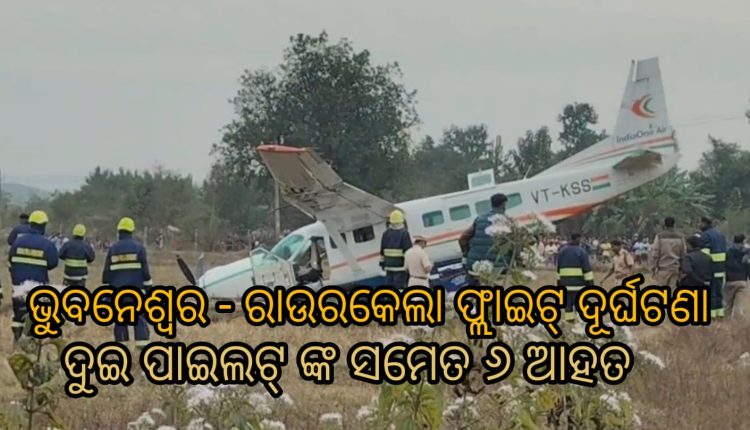 ଫ୍ଲାଇଟ୍ ଆଜି ଦୁର୍ଘଟଣା ଗ୍ରସ୍ତ ହୋଇ ୨ ପାଇଲଟ୍ ଙ୍କ ସମେତ ୬ ଜଣ ଆହତ ହୋଇଛନ୍ତି। ଆହତ ମାନଙ୍କୁ ରାଉରକେଲାର ଏକ ଘରୋଇ ହସ୍ପଟାଲରେ ଚିକିତ୍ସା କରା ଯାଉଛି। ଭୁବନେଶ୍ୱର ରୁ ନିର୍ଦ୍ଧାରିତ ସମୟ ରୁ ବିଳମ୍ବରେ ଛାଡ଼ିବା ପରେ ଏହି ୯ ସିଟ୍ ବିଶିଷ୍ଟ ପ୍ଲେନ୍ ରେ ଜଲଦା ନିକଟରେ ଯାନ୍ତ୍ରିକ ତ୍ରୁଟି ଦେଖା ଦେଇଥିଲା। ବିମାନ ଟି ସିଙ୍ଗଲ୍ ଇଞ୍ଜିନ ବିଶିଷ୍ଟ ଥିଲା। ଏହି ଅଞ୍ଚଳ ଜନବସତି ଅଞ୍ଚଳ ହୋଇଥିବାରୁ ପାଇଲଟ୍ ବୁଦ୍ଧି ଏବଂ ସାହସ ଜୁଟାଇ ପ୍ଲେନ୍ କୁ ଏକ ଖାଲି ପଡିଆ ରେ ଲେଣ୍ଡିଂ କରାଇ ଥିଲେ। ଏହା ଦ୍ବାରା ବିମାନ ଟି ଦୁର୍ଘଟଣା ଗ୍ରସ୍ତ ହୋଇଥିଲା ଏବଂ ସମସ୍ତ ଛଅ ଜଣ ଆହତ ହୋଇଥିଲେ। ସ୍ଥାନୀୟ ଲୋକ ମାନେ ଆହତ ଙ୍କୁ ଉଦ୍ଧାର କରି ହସ୍ପିଟାଲ ପଠାଇଥିଲେ। ଘଟଣା ସ୍ଥଳରେ ରାଉରକେଲା ଏସପି ନୀତେଶ ୱାଧୱାନି, ଫାୟାର ଟିମ୍ ପହଞ୍ଚି ଉଦ୍ଧାର କାର୍ଯ୍ୟ ଜାରି ରଖିଥିଲେ। କେଉଁ କାରଣରୁ ଦୁର୍ଘଟଣା ଘଟିଲା ତାର ତଦନ୍ତ କରିବାକୁ ଟେକ୍ନିକାଲ ଟିମ୍ ପହଞ୍ଚିଛନ୍ତି। ଆହତ ହୋଇଥିବା ଯାତ୍ରୀ ସୁଶାନ୍ତ ବିଶ୍ୱାଳ , ଅନିତା ସାହୁ , ସୁନିଲ ଅଗ୍ରୱାଲ , ସବିତା ଅଗ୍ରୱାଲ ଏବେ ଚିକିତ୍ସାଧିନ ଅଛନ୍ତି। ପାଇଲଟ ଦ୍ବୟ ନବୀନ