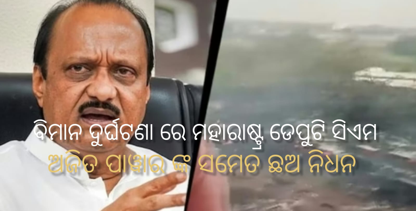 ଏକ ଦୁଃଖଦ ବିମାନ ଦୁର୍ଘଟଣାରେ ମହାରାଷ୍ଟ୍ର ଉପମୁଖ୍ୟମନ୍ତ୍ରୀ ଅଜିତ ପାୱାର ମୃତ୍ୟୁ ବରଣ କରିଥିବା ସୂଚନା ମିଳିଛି। ଅଜିତ ପାୱାର ଙ୍କ ସମେତ ବିମାନରେ ଥିବା ଅନ୍ୟ ୬ ଜଣଙ୍କ ମୃତ୍ୟୁ ହୋଇଥିବା ସୂଚନା ମିଳିଛି।ଆଜି ସକାଳେ ଘଟିଛି ଏହି ଦୁର୍ଘଟଣା। ନିର୍ବାଚନ ପ୍ରଚାରରେ ଶ୍ରୀ ପାୱାର ଯାଉଥିବା ବେଳେ ବରାମତି ନିକଟରେ ଏହି ଦୁର୍ଘଟଣା ଘଟିଛି। ଅଜିତ ପାୱାର ଏବଂ ଅନ୍ୟ ମାନଙ୍କ ନିଧନରେ ମହାରାଷ୍ଟ୍ର ସମେତ ସମଗ୍ର ଦେଶରେ ଶୋକର ଛାୟା ଖେଳି ଯାଇଛି। ତେବେ ଏହା କେବଳ ଏକ ଦୁର୍ଘଟଣା କିମ୍ବା ଏହା ପଛରେ କୌଣସି ଷଡଯନ୍ତ୍ର ଅଛି ତାହା ତଦନ୍ତ ପରେ ଜଣା ପଡିବ।