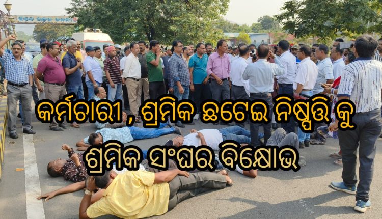 ରାଉରକେଲା : ଆରଏସପି ରୁ ୪୦ ପ୍ରତିଶତ ଶ୍ରମିକ ଛଟେଇ ନିଷ୍ପତ୍ତି କୁ ଆର ଏସ ଏସ ର ବିରୋଧ।। ପ୍ରଶାସନିକ ଭବନ ସମ୍ମୁଖରେ ବିକ୍ଷୋଭ ପ୍ରଦର୍ଶନ।