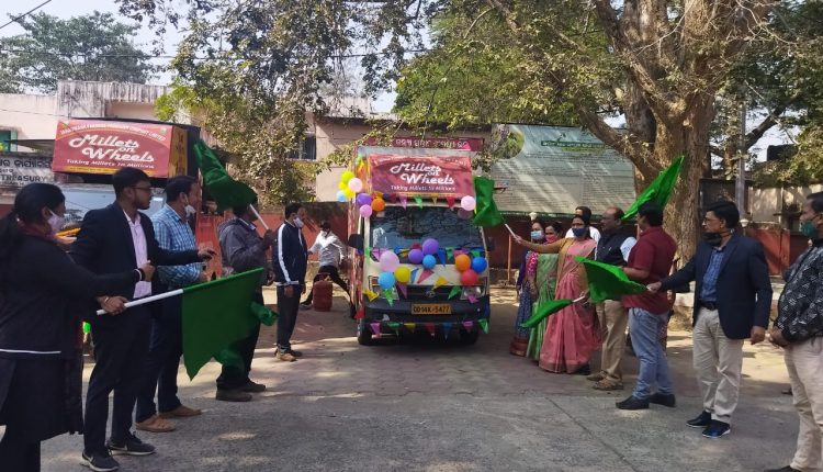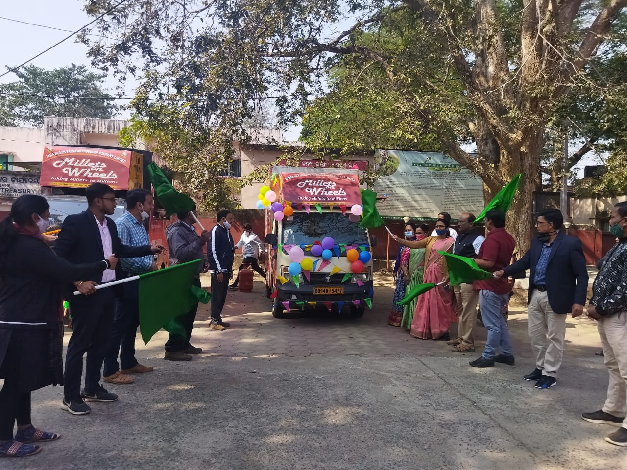ସୁନ୍ଦରଗଡ଼ ଜିଲ୍ଲାରେ ମାଣ୍ଡିଆ ଏବଂ ବିଭିନ୍ନ ପୁଷ୍ଟିଶସ୍ୟରୁ ପ୍ରସ୍ତୁତ ପୁଷ୍ଟିକର ଜଳଖିଆକୁ ଲୋକପ୍ରିୟ କରିବା ପାଇଁ ‘ମିଲେଟ୍ ଅନ୍ ହ୍ୱିଲ୍ସ’ ବ୍ୟବସ୍ଥା ଆରମ୍ଭ କରାଯାଇଛି। ପ୍ରଥମ ପର୍ଯ୍ୟାୟରେ ଦୁଇଟି ସ୍ୱତନ୍ତ୍ର ଗାଡ଼ି ମାଧ୍ୟମରେ ନୂଆଗାଁ ଏବଂ କୁତ୍ରା ବ୍ଲକର ବିଭିନ୍ନ ହାଟ, ବଜାର ଆଦି ସ୍ଥାନରେ ପୁଷ୍ଟିଶସ୍ୟରୁ ପ୍ରସ୍ତୁତ ଖାଦ୍ୟ ବିକ୍ରୟ କରାଯାଉଛି। ଲୋକମାନେ ଏହି ଖାଦ୍ୟ ପ୍ରତି ବିଶେଷ ଆଗ୍ରହ ଦେଖାଉଥିବା ଦେଖିବାକୁ ମିଳିଛି।