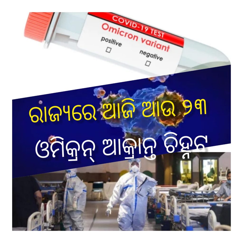 ରାଜ୍ୟରେ ଆଜି ଆଉ ୨୩ ଓମିକ୍ରନ୍ ସଂକ୍ରମିତ ଚିହ୍ନଟ।। ୧୯ ପୁରୁଷ ୪ ମହିଳା ଚିହ୍ନଟ।। ଆକ୍ରାନ୍ତଙ୍କ ସଂଖ୍ୟା ପହଁଚିଲା ୩୭।