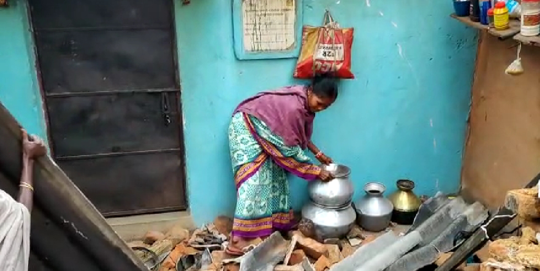 ଭାଙ୍ଗି ଯାଇଥିବା ଘରୁ ନଷ୍ଟ ହୋଇଯାଇଥିବା ଆସବାବପତ୍ର ସାଉଁଟି ପୁଣି ଥରେ ଜୀବନ ସଂଘର୍ଷ କରିବାକୁ ଉଦ୍ୟମ କରୁଛନ୍ତି ମହିଳା। ଗତକାଲି ରାତିରେ ହାତୀ ଆକ୍ରମଣରୁ ସେ ଏବଂ ତାଙ୍କ ପରିବାର ବର୍ତ୍ତି ଯାଇଥିବାବେଳେ ହାତୀ ଘରଟିକୁ ଭାଙ୍ଗି ଦେଇଥିଲେ