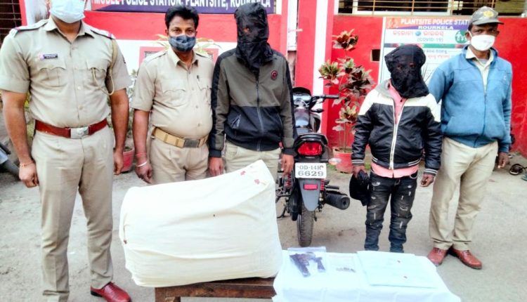 ଦୁଇ ଗଞ୍ଜେଇ ଚାଲାଣକାରୀ ଙ୍କୁ ଗିରଫ କଲେ ପ୍ଲାଣ୍ଟସାଇଟ ପୋଲିସ।। ଗଞ୍ଜେଇ , ପିସ୍ତଲ , ଗୁଳି , ବାଇକ ଜବତ।