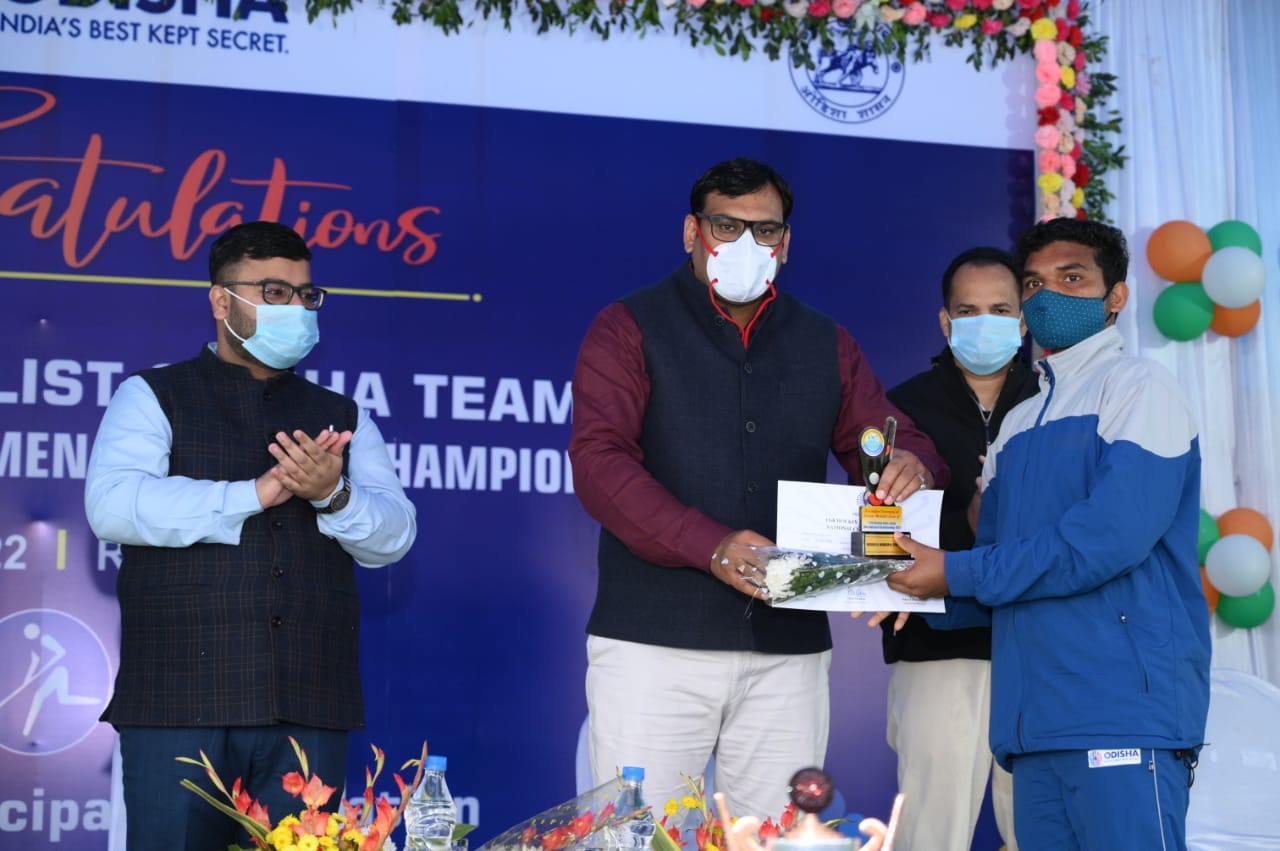 ତାମିଲନାଡୁର କୋଭିଲପଟିଠାରେ ହକି ଇଣ୍ଡିଆ ପକ୍ଷରୁ ଆୟୋଜିତ ୧୧ତମ ଜାତୀୟ ଚାମ୍ପିଅନସିପ-୨୦୨୧ର କନିଷ୍ଠ ପୁରୁଷ ବର୍ଗରେ ଭାଗନେଇ ଓଡ଼ିଶା ହକି ଟିମ୍ ବ୍ରୋଞ୍ଜ ପଦକ ହାସଲ କରିଛି। ତେଣୁ ଏହି ଟିମର ସମସ୍ତ ଖେଳାଳି, କୋଚ୍ ଏବଂ ଅନ୍ୟ କର୍ମକର୍ତ୍ତାମାନଙ୍କୁ ଶୁକ୍ରବାର ଦିନ ରାଉରକେଲାଠାରେ ଭବ୍ୟ ସ୍ୱାଗତ, ସମ୍ବର୍ଦ୍ଧନା ଦିଆଯାଇଛି।
