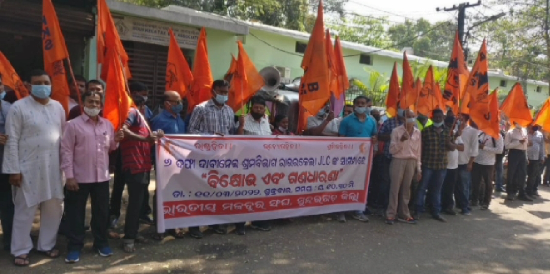 ୬ ଦଫା ଦବିନେଇ ଭାରତୀୟ ମଜଦୁର ସଭା ପକ୍ଷରୁ ରାଉରକେଲା ଯୁଗ୍ମ ଶ୍ରମ କାର୍ଯ୍ୟାଳୟ ସମ୍ମୁଖରେ ବିକ୍ଷୋଭ ପ୍ରଦର୍ଶନ କରାଯାଇଛି। ଶ୍ରମିକ ସଂଗଠନ ମାନଙ୍କୁ ମାନ୍ୟତା ଦେବାରେ ପାତର ଅନ୍ତର ନୀତି ଅବଲମ୍ବନ କରିବା ସହ ବିଭିନ୍ନ ପ୍ରକାର ଟାଳଟୁଳ ନୀତି ଅବଲମ୍ବନ କରାଯାଉଥିବା ଅଭିଯୋଗ କରିଛି
